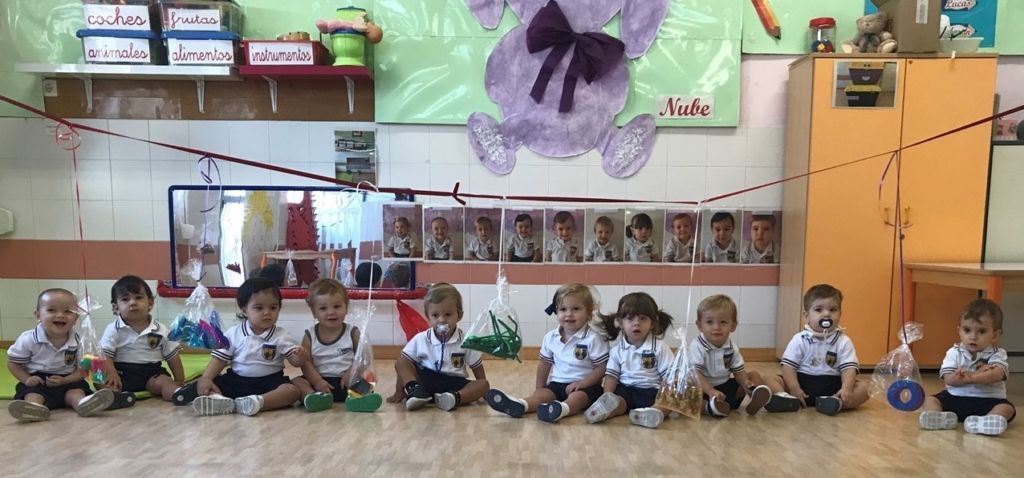 A continuación, nuestras seños María y Paqui colgaron las bolsitas a una altura accesible, para poder manipularlas y hacerlas sonar agitándolas con nuestras manitas y golpeándolas con los pies.  Nuestros sentidos y coordinación motora hicieron que esta actividad nos regaló un aprendizaje divertido, pero sobre todo muy vivencial.