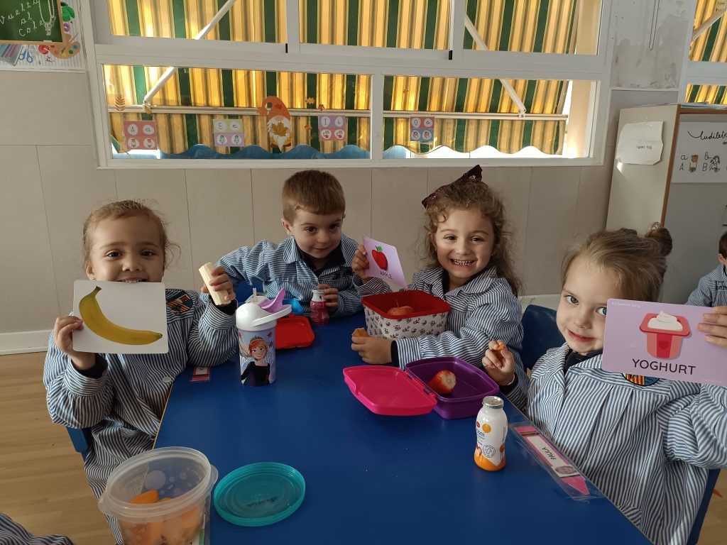 - Infantil 5 años se ha convertido en experto en “healthy shopping”. Con la nevera “empty”, organizamos nuestra propia compra en inglés. Reflexionamos sobre alimentos saludables y llenamos la cesta de frutas y verduras… aunque también se coló algo de chocolate y pizza. Porque aprender a comer bien también significa saber que hay alimentos que podemos disfrutar “sometimes”.
