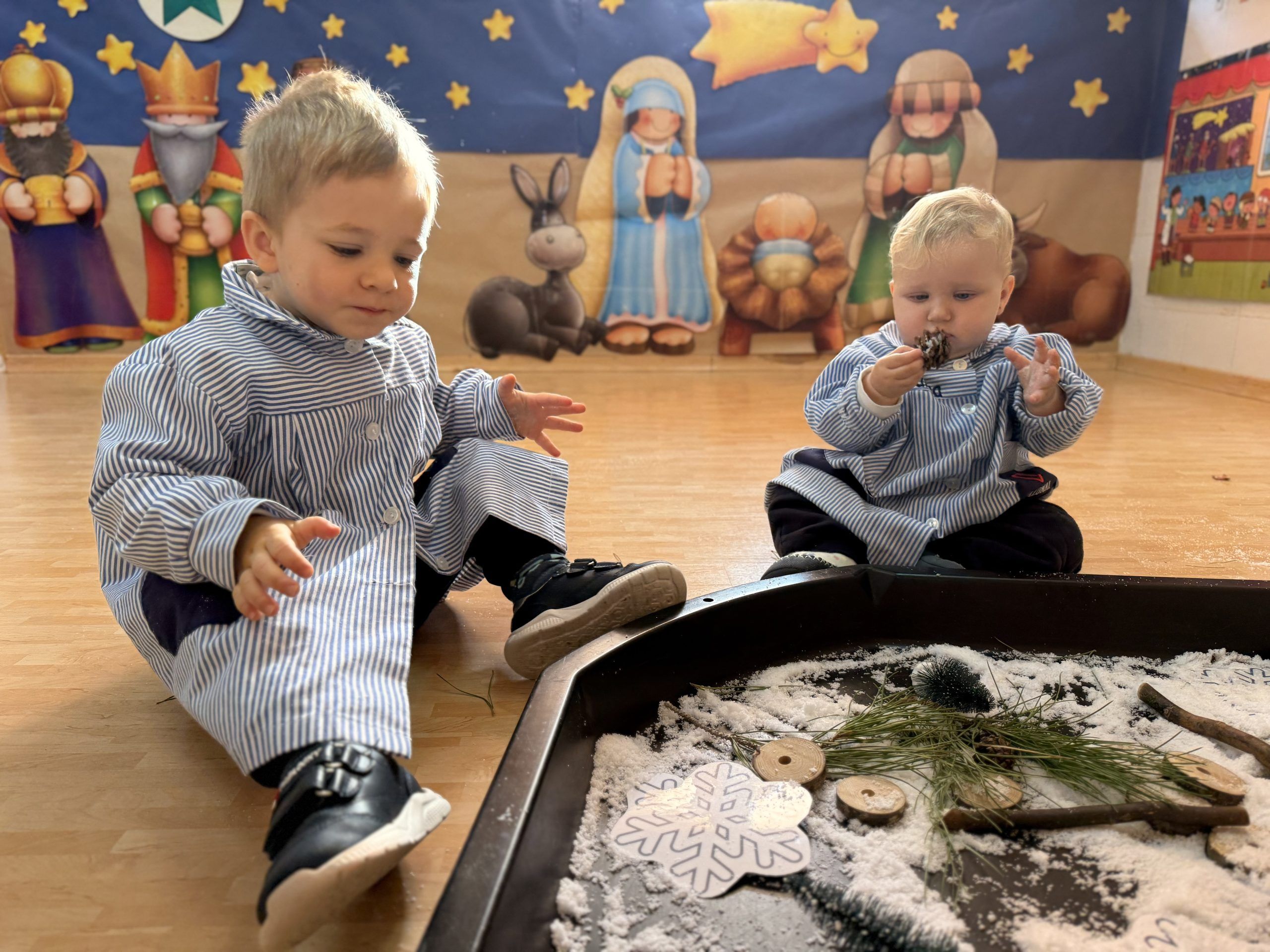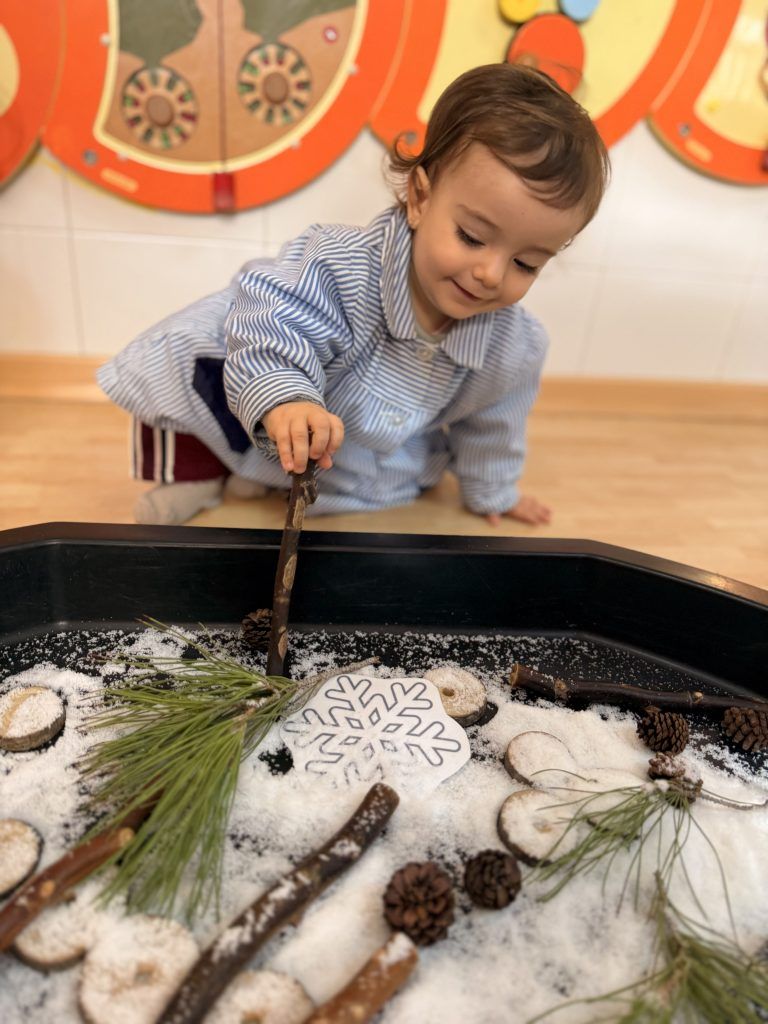 Explorando se adentran en nuestro entorno próximo, conociendo las características del invierno y de la naturaleza que nos rodea. Les invitamos en todo momento a jugar libremente e investigar poniendo en marcha la motricidad fina, los sentidos, la imaginación y la creatividad.