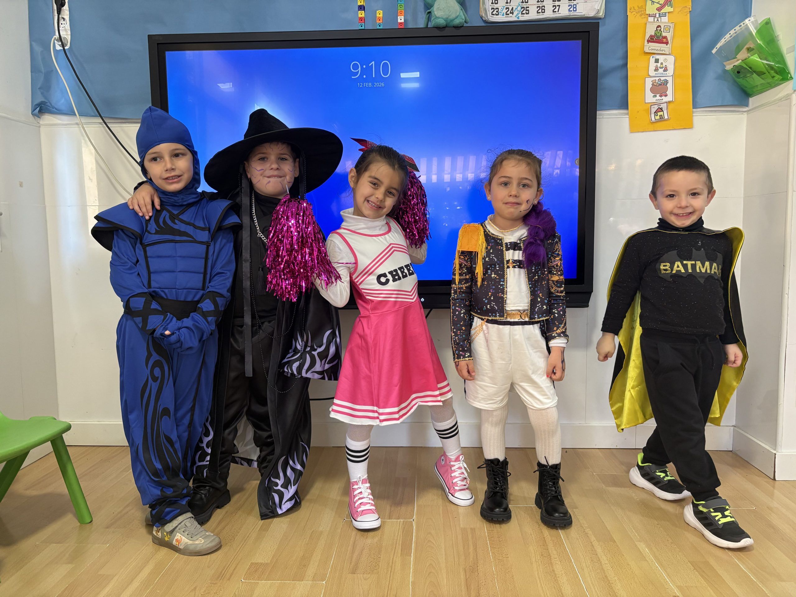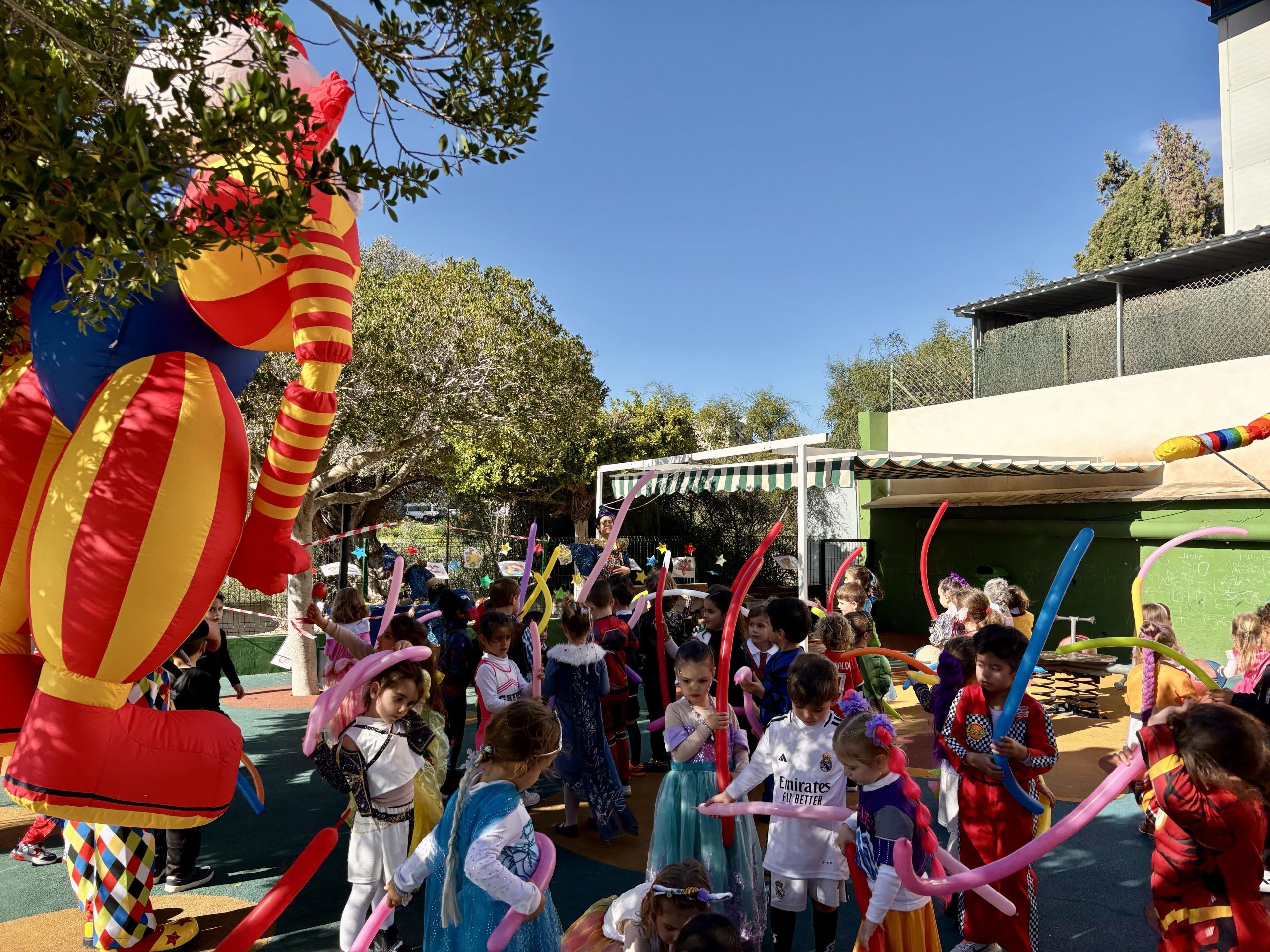 La semana de carnaval en Infantil fue pura creatividad y alegría. Comenzamos con tres días de consignas: primero, complementos divertidos como diademas y sombreros; luego, maquillaje: de flores, de superhéroes, de princesas…; y, finalmente, ¡peinados divertidos! Desde coloridas crestas y trenzas, hasta dulces de cupcakes en el pelo, la imaginación no tuvo límites.