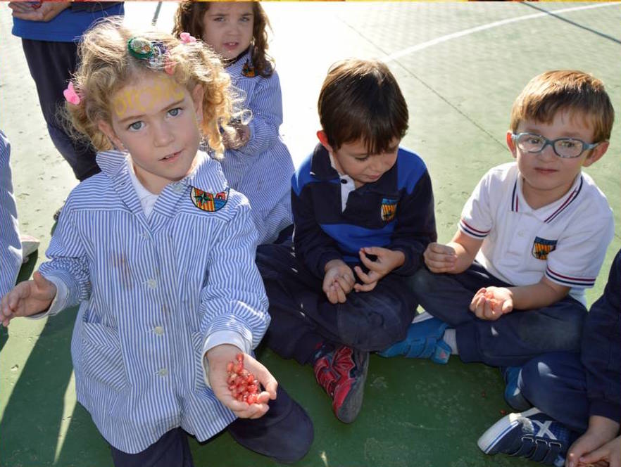 Por la tarde, el ciclo de infantil, bajamos al patio donde todos juntos recibimos a la castañera que escuchó nuestras canciones y compartimos con ellas nuestra tradicional merienda de otoño con: frutos secos, granada, mandarinas, bizcochos y un montón de deliciosos manjares.