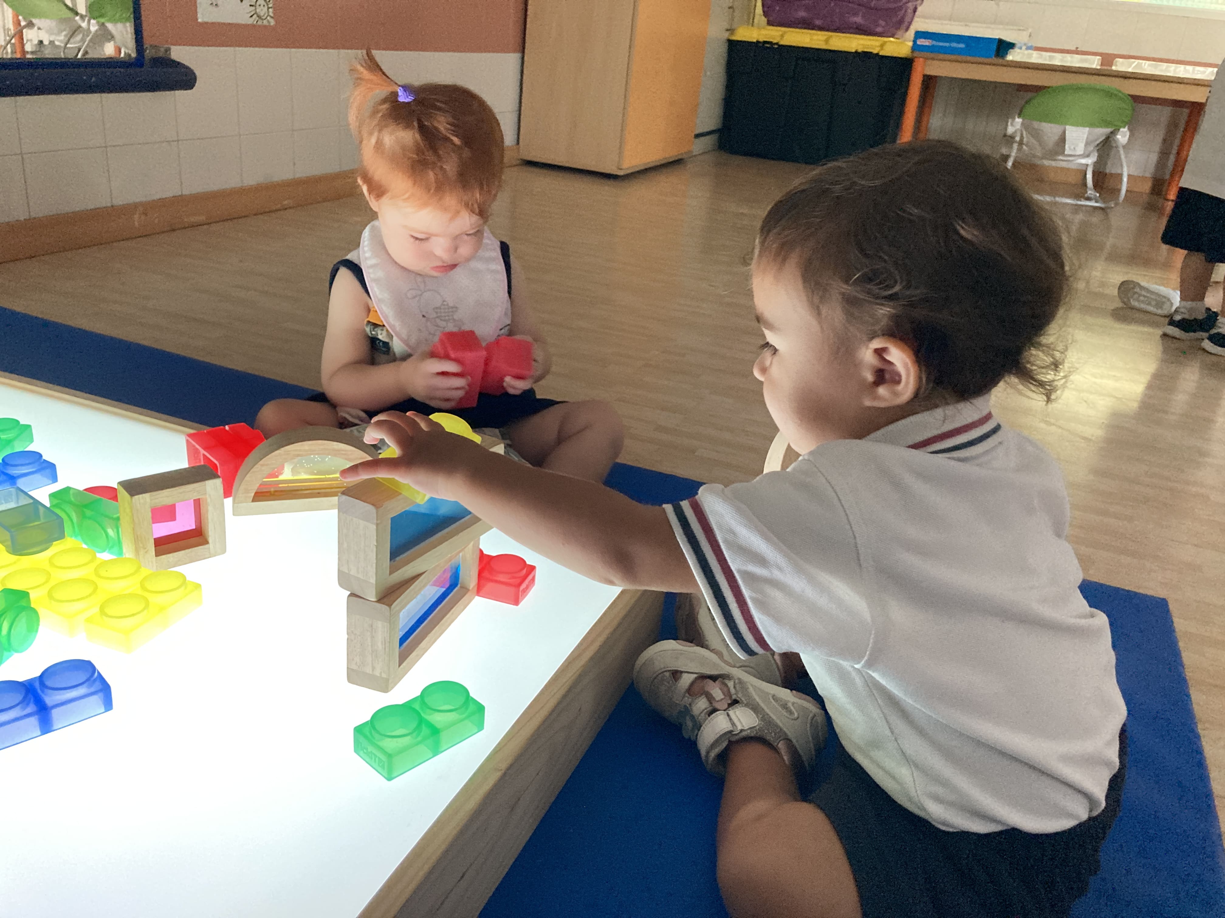 Septiembre llega a su fin y los niños y niñas de maternal 1B, ya adaptados a las rutinas del aula, han podido disfrutar de una actividad muy llamativa utilizando la mesa de luz.