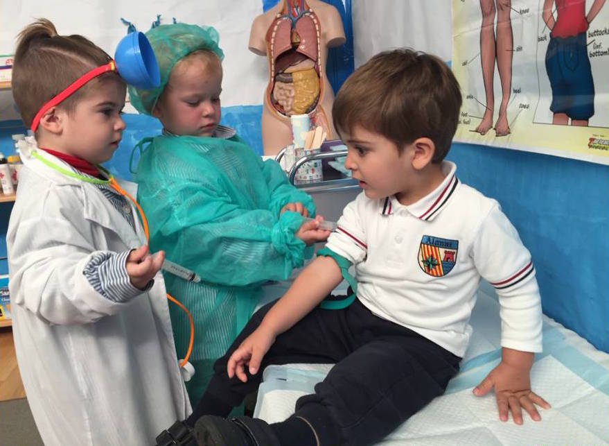 Por lo que en Maternal 2 años hemos creado en el aula un hospital, donde todos podemos jugar a ser médicos y pacientes. Además de jugar y pasarlo genial, servirá para adquirir pautas de comportamiento en la consulta del médico, para despertar la capacidad de expresar sus estados anímicos y de salud, para valorar la figura del médico como persona que nos ayuda.