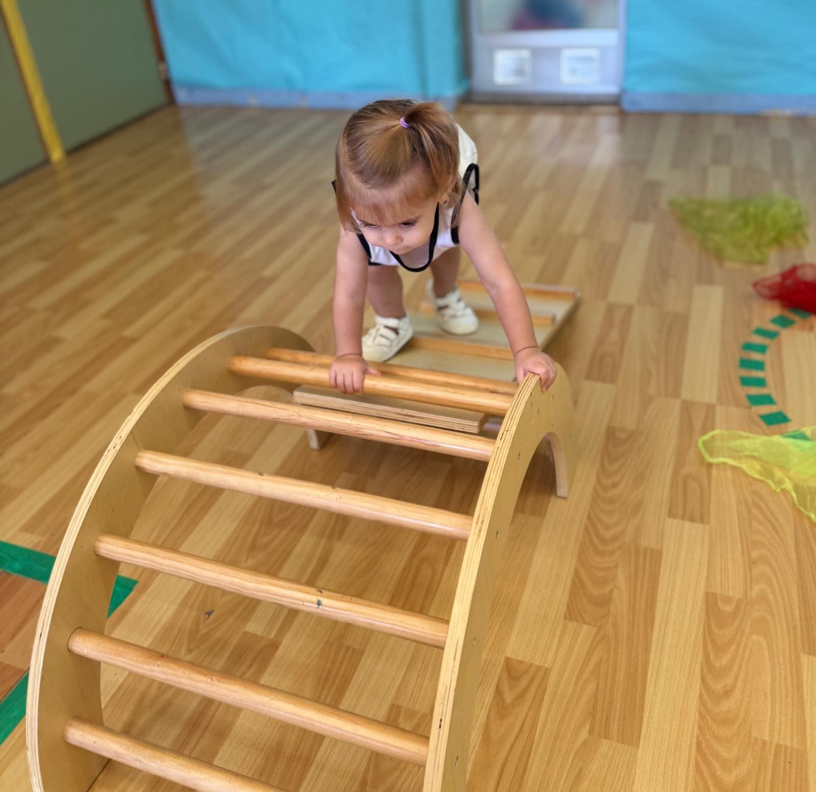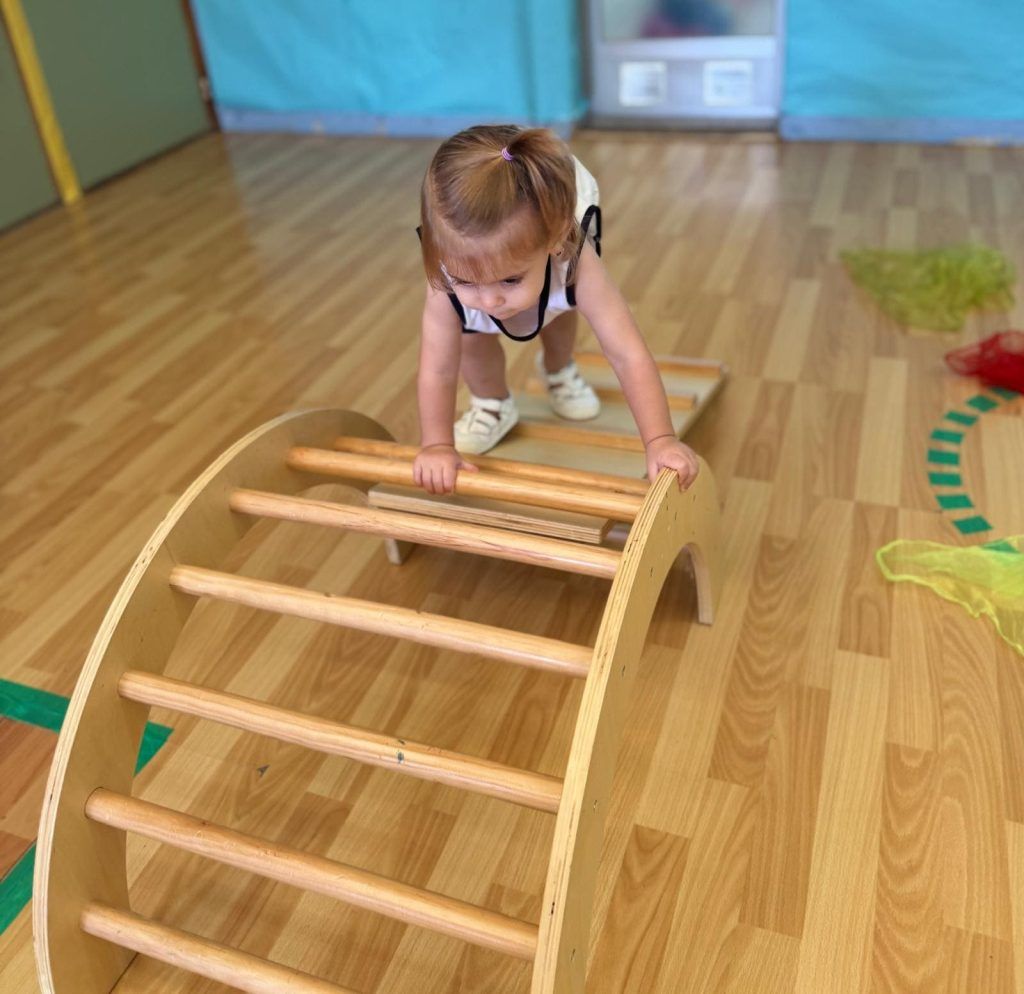 Ha habido momentos de juego compartido, llenos de descubrimiento explorando libremente con pelotas grandes, pequeñas, blanditas, de diferentes texturas, juego heurístico, cucharas de madera, palitos, cuencos, puzzles, pañuelos de colores, canciones acompañadas de bailes e instrumentos, módulos de psicomotricidad .